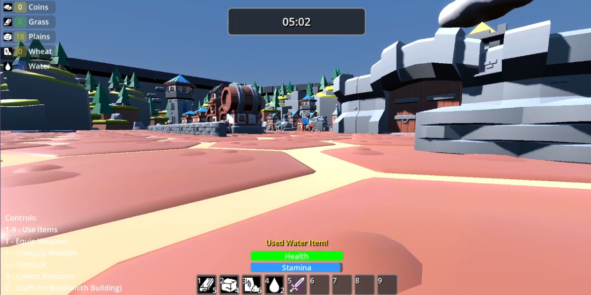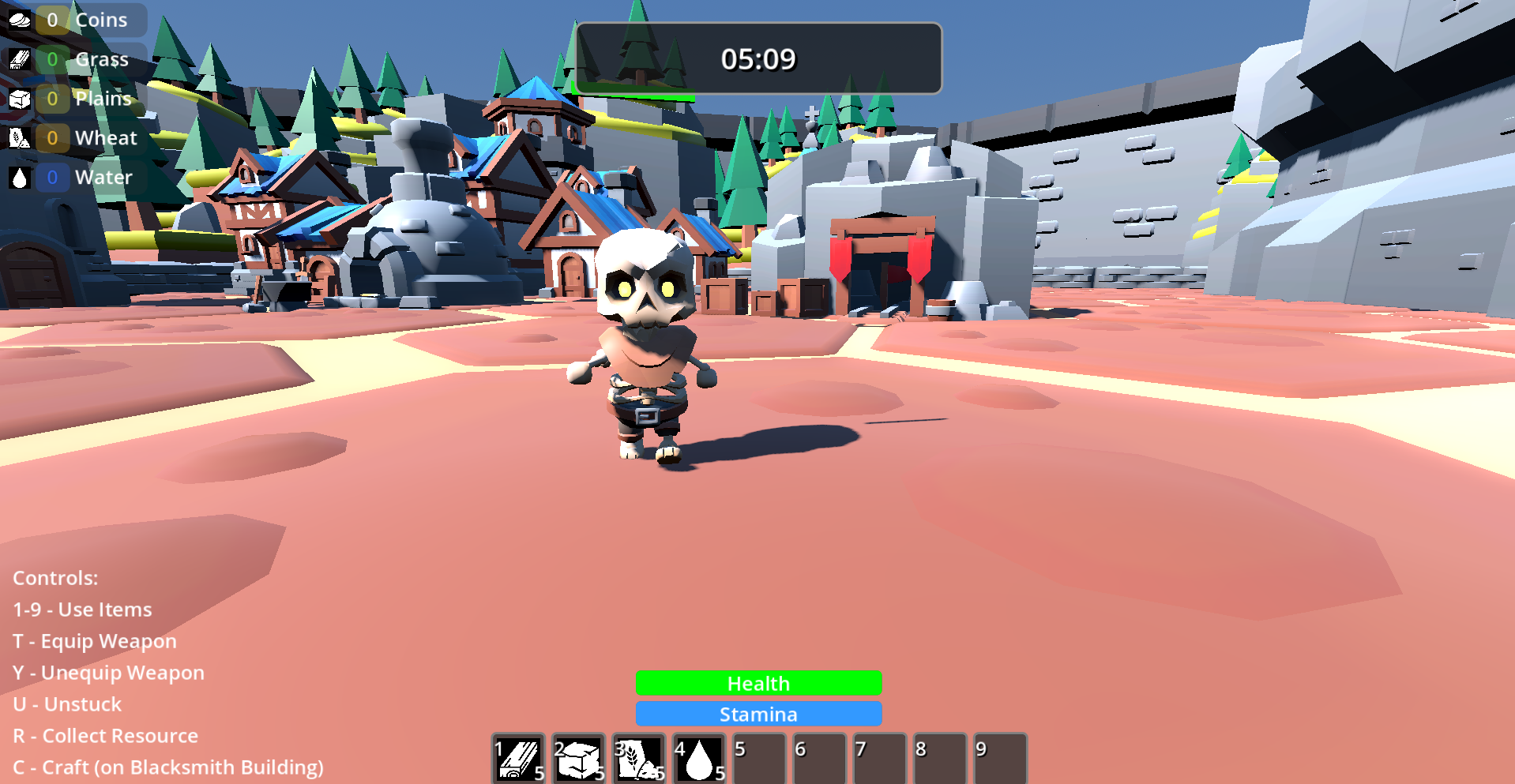 Left Click - Attack | 1-9 - Use items | ESC - Pause | U - Unstuck
